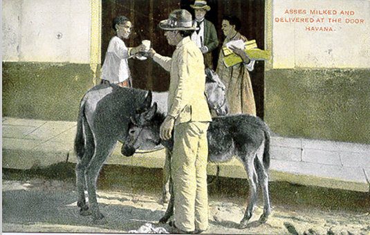 El vendedor de leche de burras ofreciendo su mercancía recién ordeñada a las familias de La Habana.