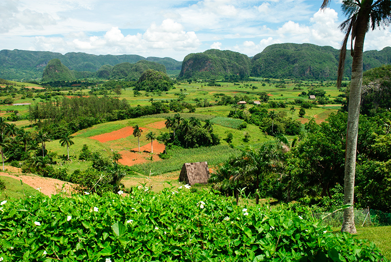 paisaje único en Cuba, en el que se alternan los llamados mogotes, con las