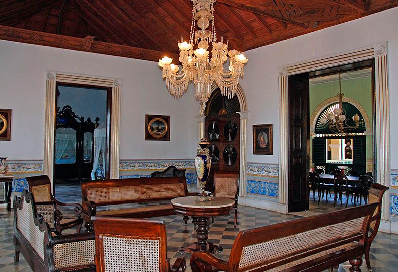 Uno de los catorce salones del Museo Romántico de Trinidad, donde se exhiben valiosos objetos decorativos del siglo XIX, como vajillas, muebles antiguos, porcelana, objetos de plata, etc.