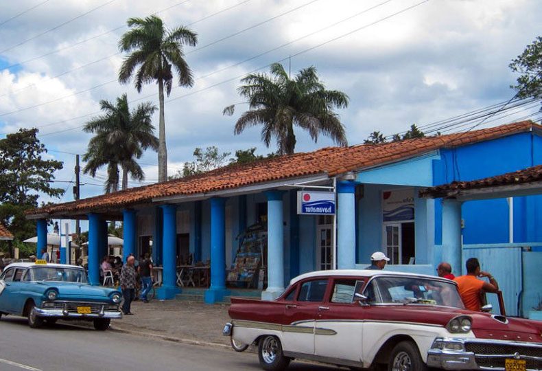 La piquera de los taxis en el centro del pueblo de Viñales.