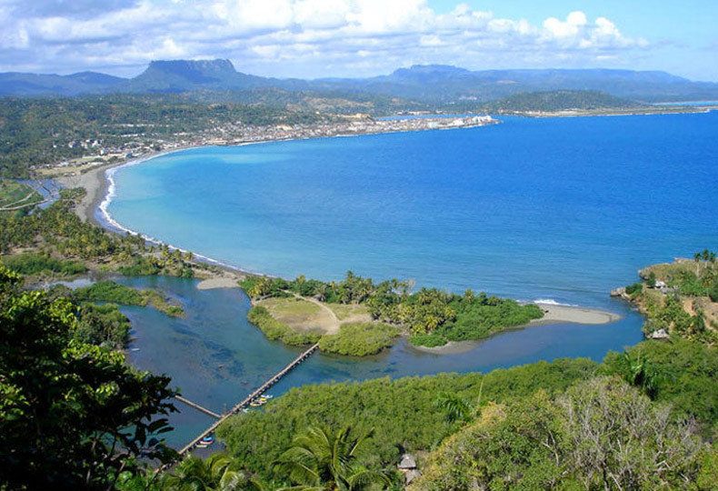 Vista panorámica de Baracoa, con las cristalinas aguas de la playa Duaba.