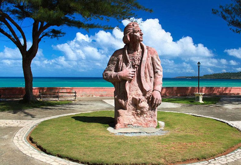 Monumento a Cristóbal Colón, el descubridor de Cuba, junto a las aguas de la bahía de Baracoa.