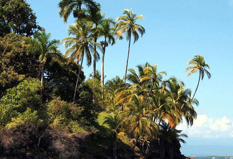 Uno de los maravillosos paisajes de Baracoa, donde las palmas llegan hasta el mismo borde del agua.